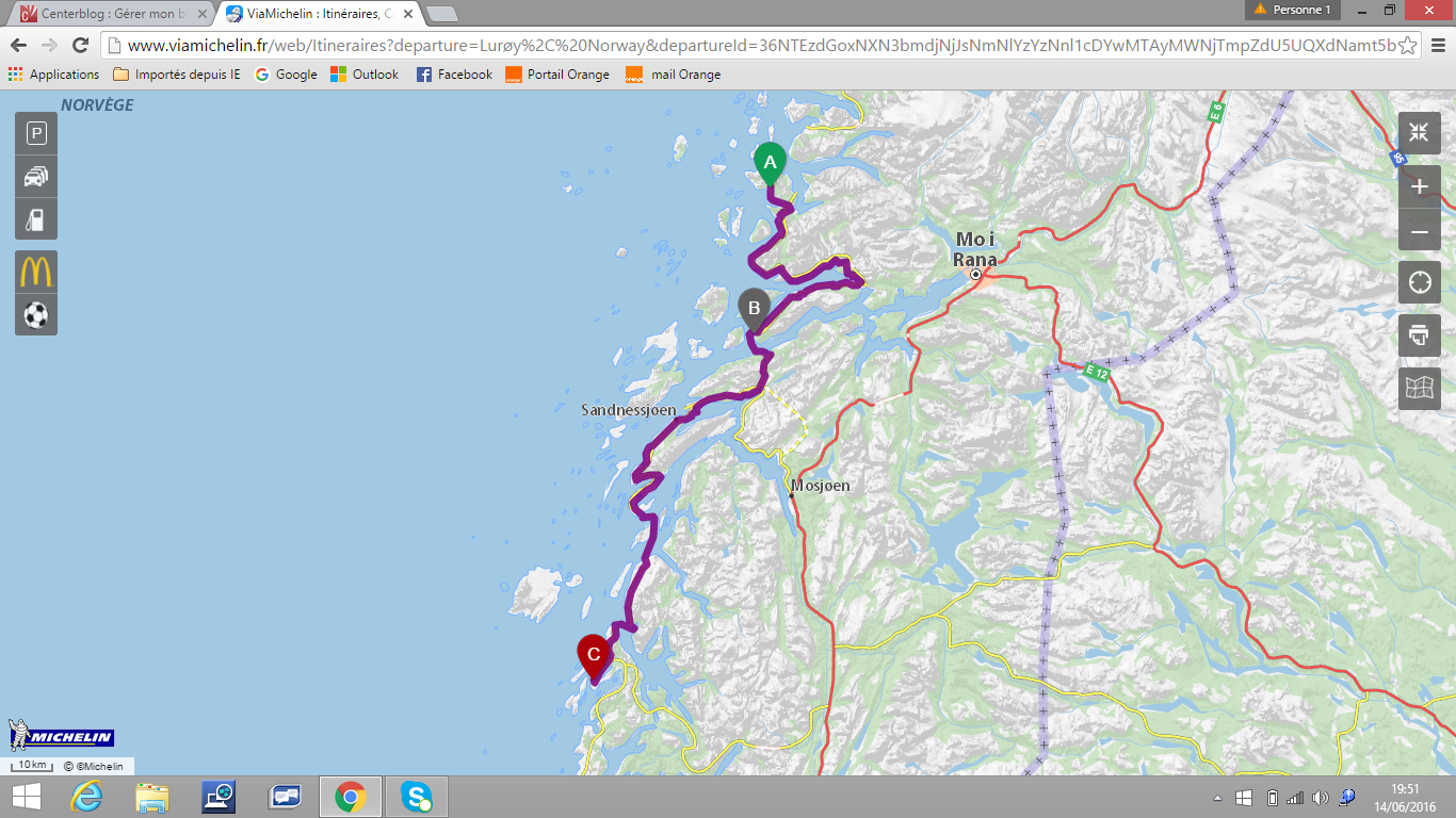 J'entend la copilote me dire que depuis que l'on a repassé ( vers le sud ) le cercle polaire, la température est déjà meilleure. C'est sans doute vrai, et on est content de retrouver du grand soleil et des degrés.
