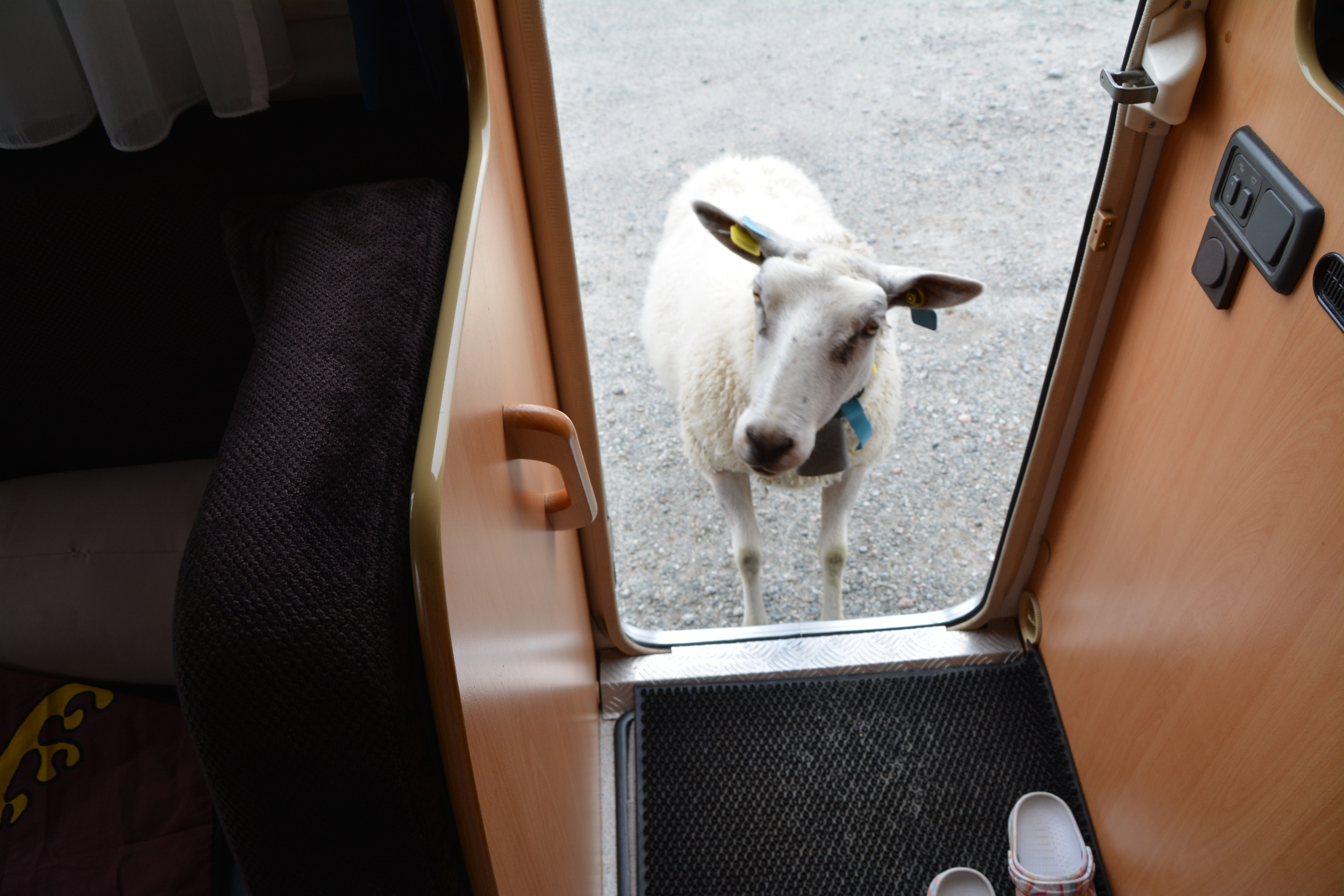 C'est une longue traversée d'un plateau rocailleux, à l'allure quasi lunaire, sans aucun village, aucune maison même isolée;  seuls habitants du plateau : les moutons, qui habitués à voir passer les touristes, ont pris l'habitude de quémander un morceau de pain ou quelque autre nourriture . L'un d'entre eux a quasiment failli monter dans le camping-car en grimpant sur le marchepied !  à l'aise les moutons  !
